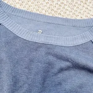 Lululemon Athletica Blue Gray reversible Waffle Boat Neck long Sweater womens 6