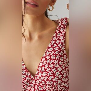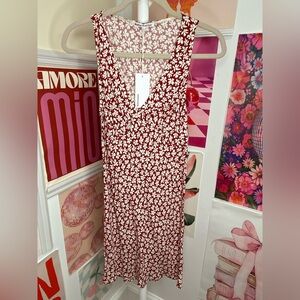 Chic floral dress with a burgundy and cream pattern. Ideal for any occasion.