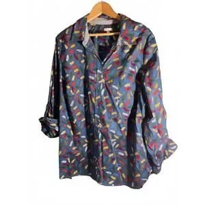 Talbots Woman Colorful Novelty Print Feather Button-Up Shirt 2X