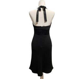 Jones New York Black Halter Neck Dress Satin Trim Cocktail Evening