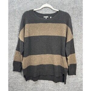 Vince Yak Wool Rugby Stripe Sweater Womens Small Gray Tan Relaxed Knit Top. Excellent pre-owned condition with no flaws found. Measurements in photos. Fast shipping!