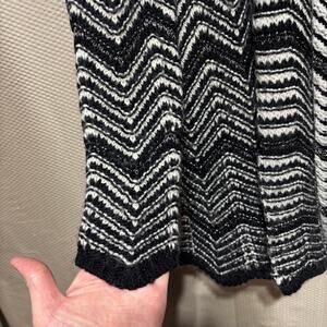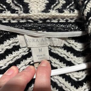 Laura Ashley Black White Chevron Knit Cardigan Size M Metallic Accents