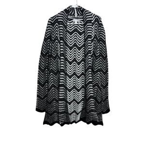 Get ready to elevate your wardrobe with this absolutely stunning Aura Ashley Black and White Chevron Knit Cardigan! This beautiful piece is a true showstopper, featuring a captivating chevron pattern in classic black and white that is effortlessly chic.