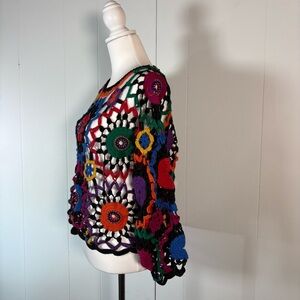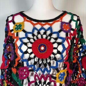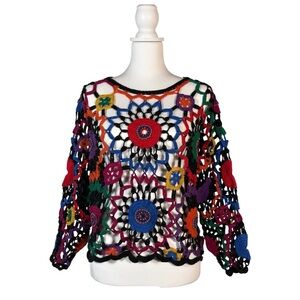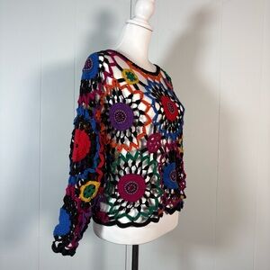 Vintage Crochet Knit Sweater Women’s L Hippie Festival Beaded Long Sleeve