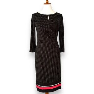 Talbots Black & White 3/4 Sleeves Keyhole Neck Polka Dot A-Line Dress Size S