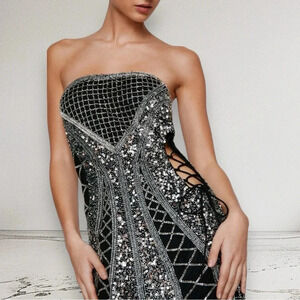 NEW NASTY GAL Bandeau Sequin Lace Up Cut Out Mini Dress Size 8