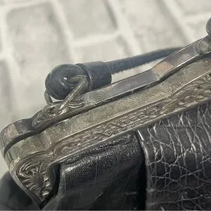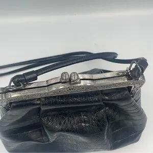 Brighton Black Croc-Embossed print Handbag Vintage 80’s. Shoulder crossbody USED