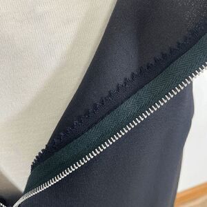 Union made in the USA. No materials tag: feels like high end polyester and dress top feels like acetate.