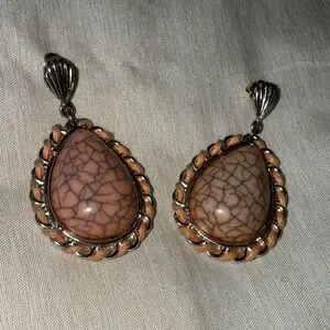 These elegant coral teardrop earrings feature a unique crackle design, perfect for adding a touch of sophistication to any outfit. The silver accents enhance their luxurious appeal.