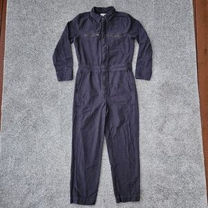 This Madewell full body jumpsuit is super cute! It is a very dark navy blue in color, it has two chest zipper pockets, two nice and deep front hand pockets, two back butt pockets, a button at the collar and on the sleeve cuffs. Excellent condition, please see photos for details and measurements!