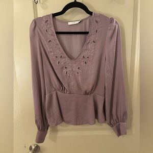 Lush Lavender Embroidered Blouse - Floral, Romantic, Spring, Feminine
