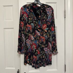 Chic romper with vibrant floral design. Features multicolor accents for a bold look.