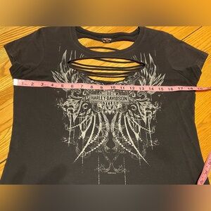 ***This was one of my faves! Some fading, small hole to bottom front- see pic. H-D garment tag pinned up at neckline… I didn’t want to cut the tag off but I didn’t want it to show🙃 Please do see all pics as they are part of description***