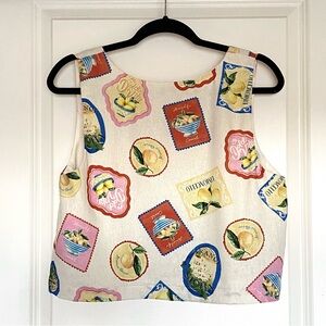 Vivi la dolce vita in this sleeveless linen Rachel Zoe top that features an Italian-themed print.