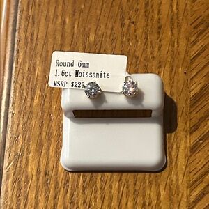 Elegant moissanite stud earrings set in silver. Perfect for adding a touch of sparkle to any outfit. Regular price $229