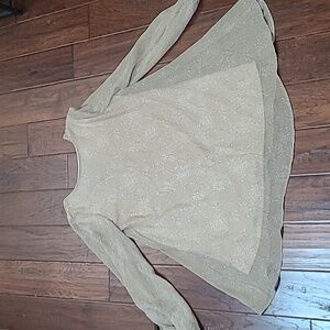Adrienne Tan & Cream Snakeskin Overlay Top with Sheer Sleeves size Small