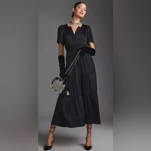 💘 Anthropologie black Somerset Maxi-dress the satin addition Sz S