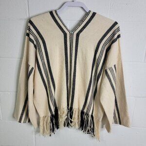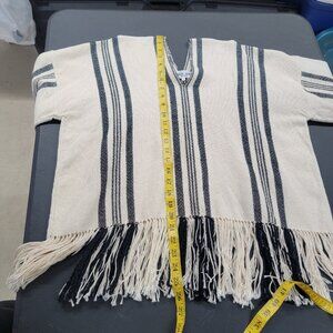 Apiece Apart Ivory Amelia Striped Fringe Poncho Peru Boxy Boho Hippie Festival see photos for measurements used condition