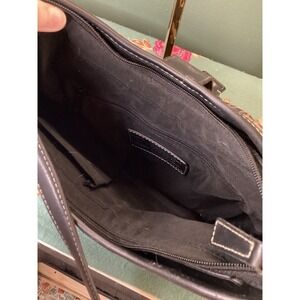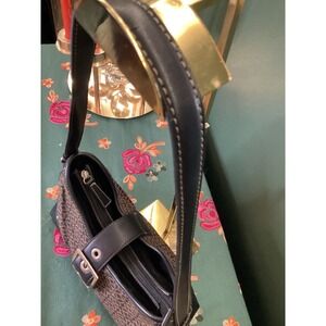 Carry your essentials with sophisticated flair in this Rfid branded hobo bag. The rich brown monogrammed canvas exterior, adorned with a classic interlocking geometric pattern, is beautifully contrasted by sleek black leather trim and polished silver hardware. A prominent silver buckle on the front flap adds a touch of stylish detail, while the comfortable shoulder strap ensures effortless wear. The spacious interior, lined in black, features a zippered pocket for secure storage. This versatile bag is perfect for everyday errands, casual outings, or a chic addition to your travel wardrobe. PRELOVED, normal wear on bottom and corners in pics