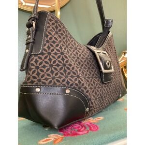 Relic Y2K Hobo Bag Brown Monogrammed Canvas Leather Trim Silver Buckle