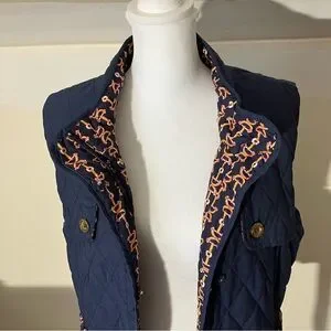 Lilly Pulitzer Hana Reversible Quilted Vest in Navy Horsebit pattern size Medium