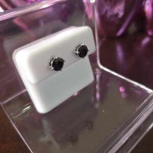 NWT 925 Sterling Silver 6MM 1.56 CTTW Black CZ Onyx Stud Earrings