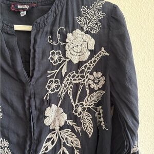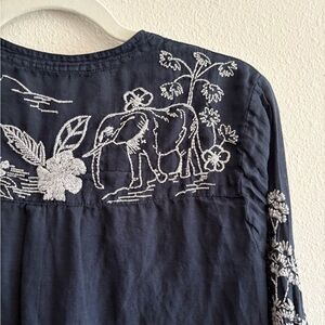 Johnny Was Osiris Voyager Tunic Top Embroidered Long-Sleeve Women’s Small Navy