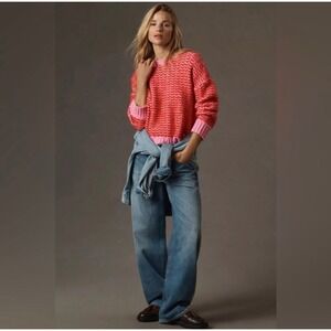 Lilli Sidonio Molly Bracken cropped jumper pink and red Size small. GUC. Anthropologie brand red and pink body oversized romantic Valentine's Day gear cute girly soft fuzzy
