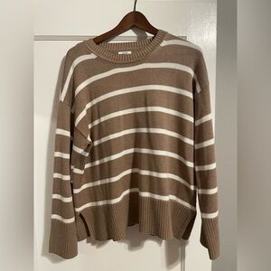 J. Crew Taupe and Cream Striped Sweater