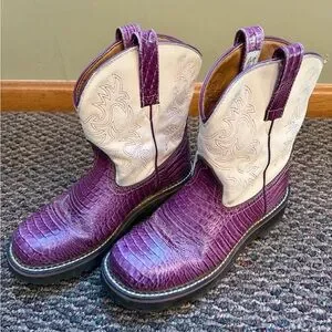 Women’s size 10 Ariat Fatbaby cowgirl boots, in excellent condition! Very lightly worn and stored in a bag. These boots are so fun and beautiful! Comes from a clean smoke free home. Thank you for shopping my closet😊