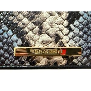 Brahmin Blue Black Snakeskin Embossed Leather Continental Wallet Clutch