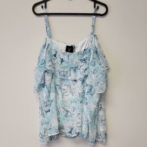 Torrid Disney Cinderella Sketches Blue Chiffon Flutter Sleeve Top