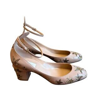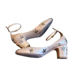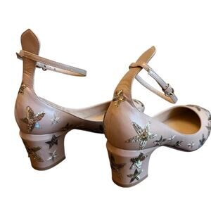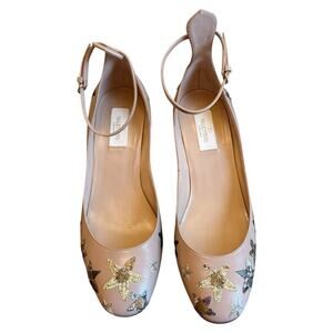 Valentino Garavani Tango Pumps Tan Beige Star Sequin Block Heel EU 39.5 US 9.5