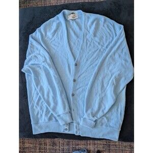 This Vintage 1980s Powder Blue Cardigan Sweater in XL size is a timeless piece made in the USA. The sweater features a solid light blue knit, long sleeves, and a classic fit V neckline. This cardigan is both stylish and comfortable with a touch of nostalgia for a variety of styles including coastal grandma, eclectic Grandpa, old money, light academia, preppy, modern prep and more. Ideal for men or women looking for a vintage layering piece their wardrobe, this sweater is a unique and eclectic choice for those who appreciate quality craftsmanship and classic design. Material tag was cut out but feels like a wool blend fabric.