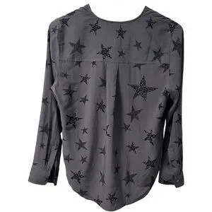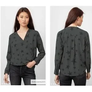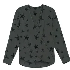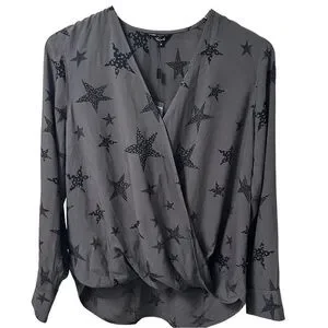 Rails Hillary Charcoal Cheetah Stars Faux Wrap Blouse Top