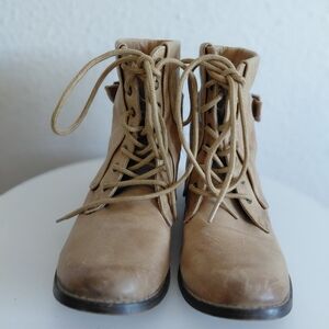 MIA Womens Size 8.5 Beige Leather Laces Ankle Boots Booties. Leather upper , fabric lining . In very good used condition