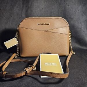 Michael Kors Outlet Jet Travel Medium Dome Crossbody Bag brown/gold chain