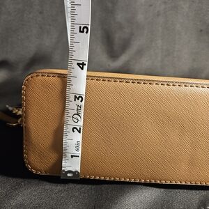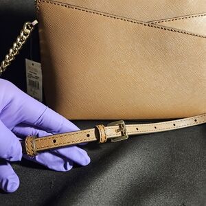 This crossbody bag is new and has not been used. There is a minor scratch on the front, right side of the bag. However, the overall condition of the item is excellent.