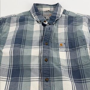 This Carhartt plaid shirt is the perfect addition to any casual outfit. With a relaxed fit and short sleeves, it's a great option for warm weather. The lightweight fabric makes it comfortable to wear all day long. The multicolored pattern and button front add a touch of style to this classic piece.