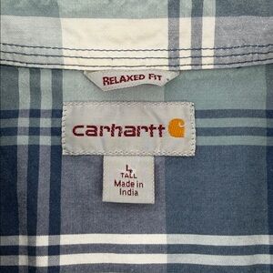 Made for men in size Large Tall, this shirt is perfect for any occasion. Whether you're running errands or hanging out with friends, this Carhartt shirt is a great choice. Its features include a lightweight fabric, relaxed fit, and short sleeves. Get ready to upgrade your wardrobe with this stylish plaid button-up shirt! With a stylish plaid pattern and collared neckline, this shirt is perfect for a variety of occasions, including travel, parties, and workwear.