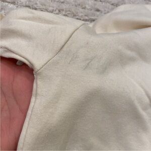 Thrifted! Has a little mark on right under arm area. Can likely be washed off! I haven’t tried.