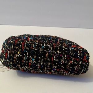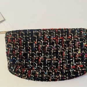LOFT Outlet Tweed Cosmetic Makeup Pouch Bag Multicolor Black Gold Zipper NWT
