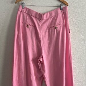 NWT: Gum pink linen blend slacks by Zara, Size Extra Large. Pleated front, front pockets, double hook waistband closure, two back pockets with tortoise shell style buttons, wide leg, high rise.