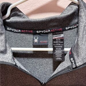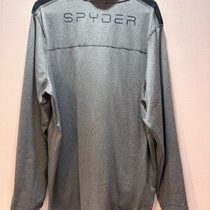 Charcoal zip-up jacket with Spyder logo. Comfortable and stylish for everyday wear.