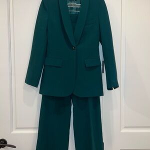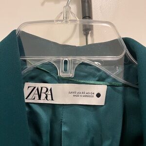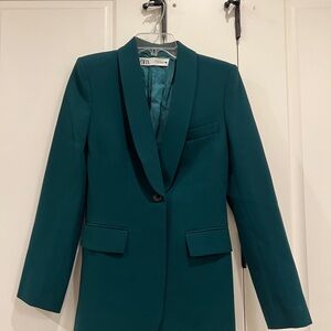Forest green pantsuit set by Zara. Ideal for formal events. Photos make it look kinda teal, but it’s fully forest green. Only worn once! Both blazer and pants are size XS