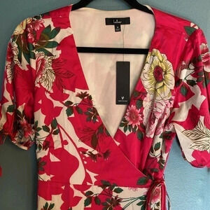 Lulus NWT pink short sleeve wrap dress- floral pattern - size medium