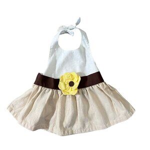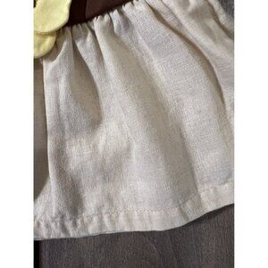 GUC, size 0-3 months. From 2011. Beautiful light linen/cotton fabric. Approximately 8.5 inches from top of bodice to bottom hem, and 7 inch unstretched waist. This is pre-owned, and has normal washwear for this type of fabric. Please look at all photos, and feel free to message me with any questions you may have about this