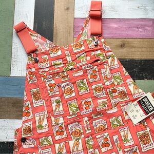 NWT Duluth Large x31L Heirloom Gardening Bib Overalls Coral Seed Packets