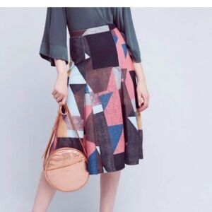 Maeve Anthropologie Cubist Knit Geometric Lined Midi Skirt Retro Colors : Sz XL