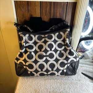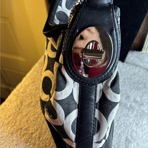 Coach 2009 HOBO Bag Canvas/Leather Denim Blue/Black EUC adjustable Strap